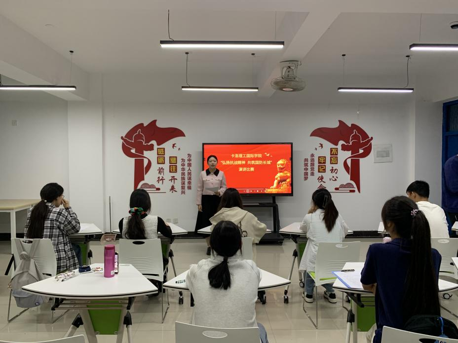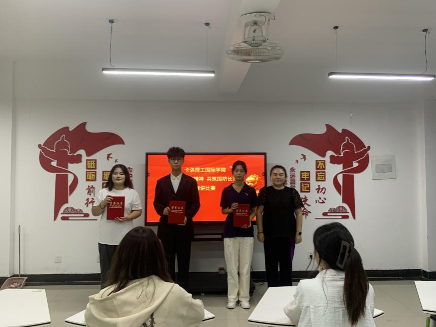 为传承红色基因,加强学生国防意识,激发爱国热忱,培育责任感与使命感,9月20日晚,卡洛理工国际学院在7号楼2204会议室举办“弘扬抗战精神,共筑国防长城”主题演讲比赛。来自学院四个年级的20 余名选手齐聚赛场,以铿锵话语重温抗战历史,以赤诚之心诉说国防担当,为现场观众带来了一场兼具思想深度与情感温度的精神洗礼。