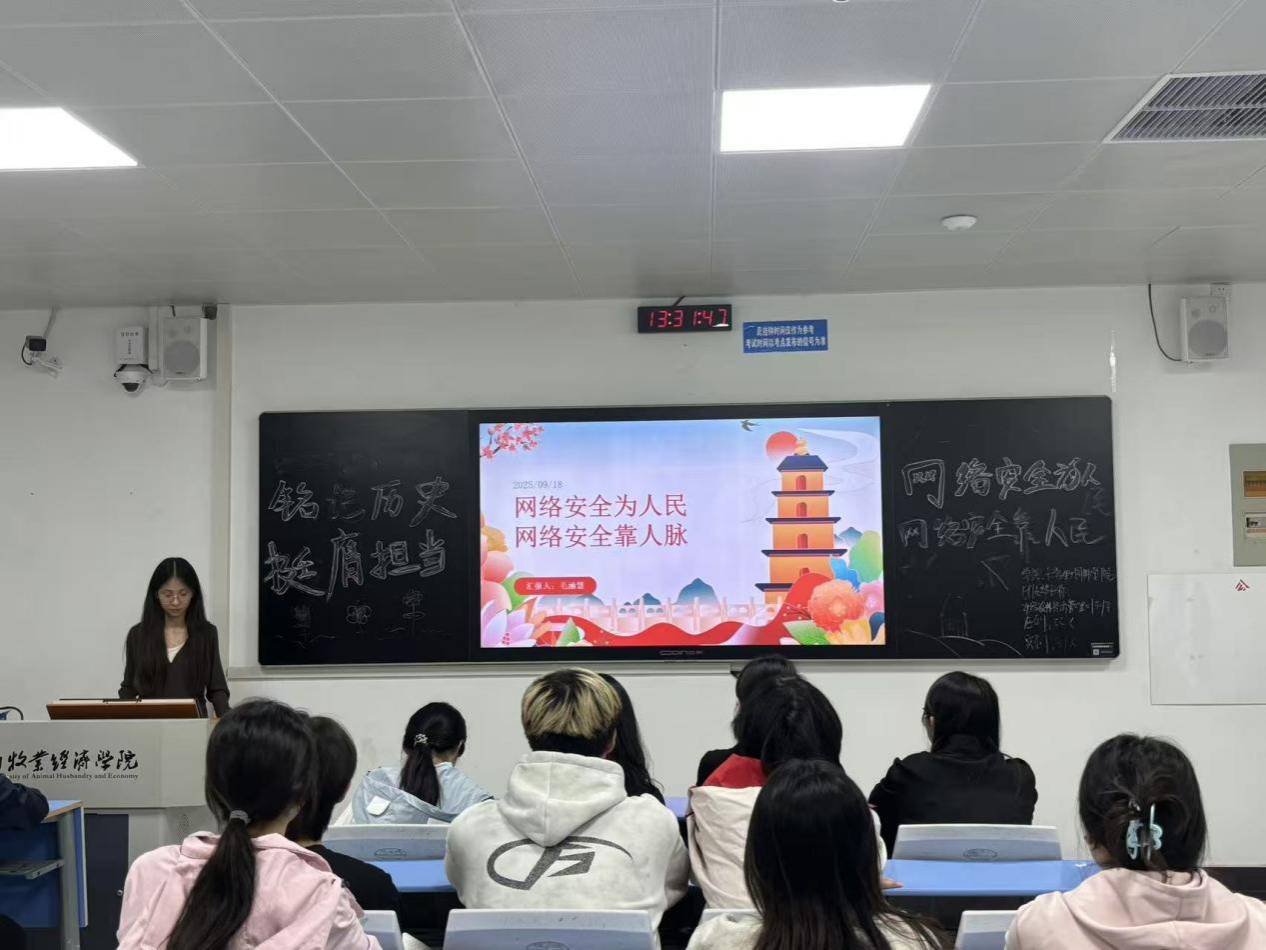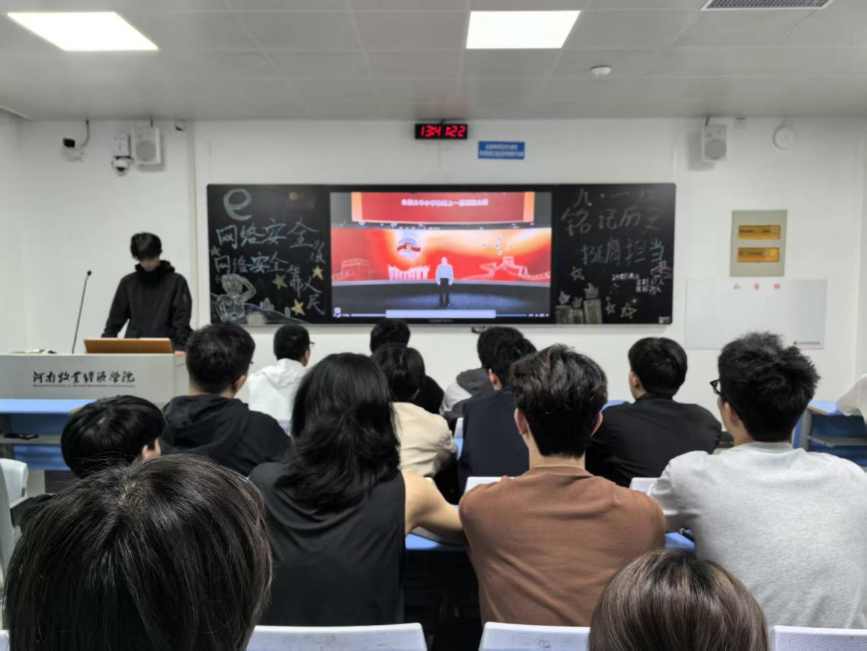团课伊始,各班团支书组织全体同学观看视频和相关资料,集中学习了《中华人民共和国网络安全法》、《中华人民共和国数据安全法》以及《中华人民共和国个人信息保护法》等国家重要法律法规与政策文件,引导同学们深刻认识维护国家网络安全的重大意义,明确自身在网络空间中的权利、义务和责任。学习互动环节,各班级发动网络安全知识云竞答,同学们踊跃参与,以赛促学,有效提升同学们的网络安全防护意识和基本技能。宣讲人朱云楷同学通过PPT为引导同学们了解青年群体的网络安全责任,鼓励同学们争做“安全宣传员”,向家人、同学普及网络安全知识,带动身边人提升安全意识。