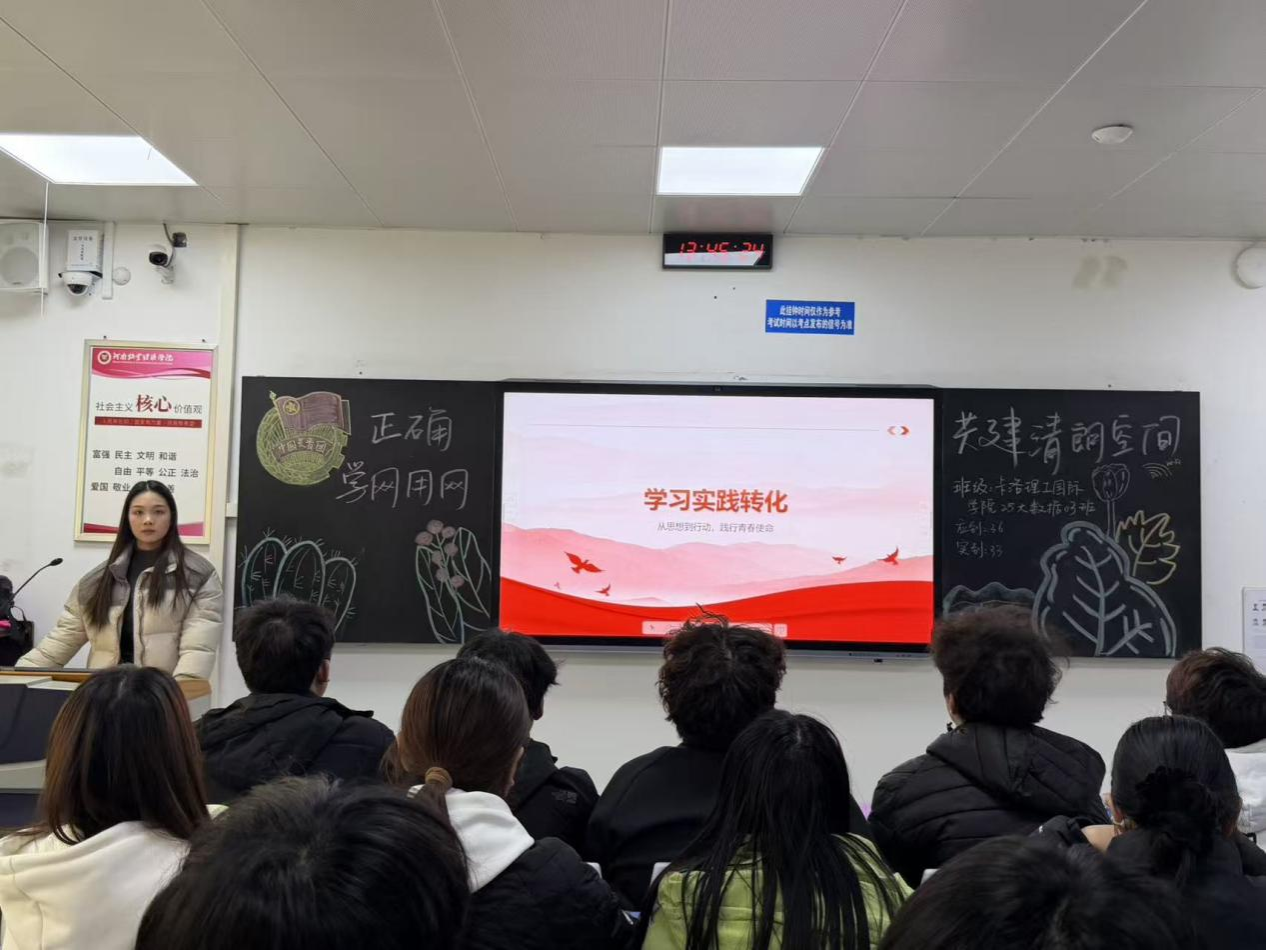 团课伊始,各班团支书结合当前网络发展新形势,带领同学们重点学习了《中华人民共和国网络安全法》的核心条款,并通过典型真实案例警示青年学生要充分认识网络违法行为的严重后果。团课交流中,尚楷贺同学表示:“面对网络上鱼龙混杂的信息,提高辨别能力是守护网络清朗的关键。”他倡议大家要学会运用科学方法筛选网络信息,关注官方媒体和权威平台,主动核实信息来源,避免被虚假信息误导。