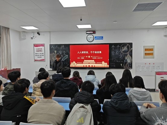 互动交流环节中,葛帅旗同学分享了自己收集整理的安全小贴士,内容覆盖校园安全、网络安全、家庭安全等多个方面。同学们围绕“电动自行车违规充电危害”“高空抛物安全风险”等现实热点展开讨论,纷纷表示要将“安全第一”的理念融入日常生活,以青年担当带动更多人重视安全、守护安全,共同构筑校园安全防线。