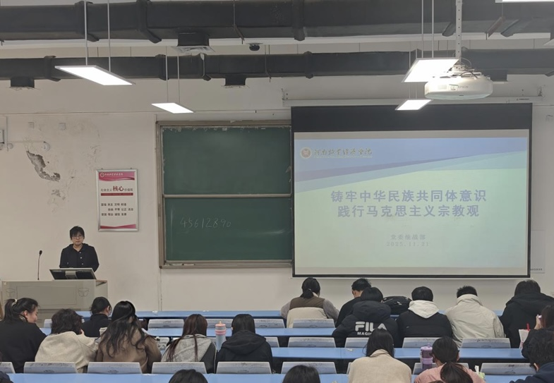 11月21日,统战部民族宗教科科长霍靖媛以《大学生中国特色社会主义民族宗教政策法规知识》为主题开展专题授课,阐释中华民族共同体意识内涵,解读宗教工作基本方针及校园“双防”要求,通过剖析案例提高学生识别、防范非法宗教活动的能力,为育人成效注入思想深度。