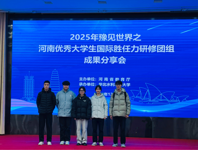 近日,由河南省教育厅主办的“河南优秀大学生国际胜任力研修团成果分享会(澳洲篇)”在华北水利水电大学龙子湖校区第一报告厅顺利举行。我院辅导员叶子老师及5名学生代表受邀参会。