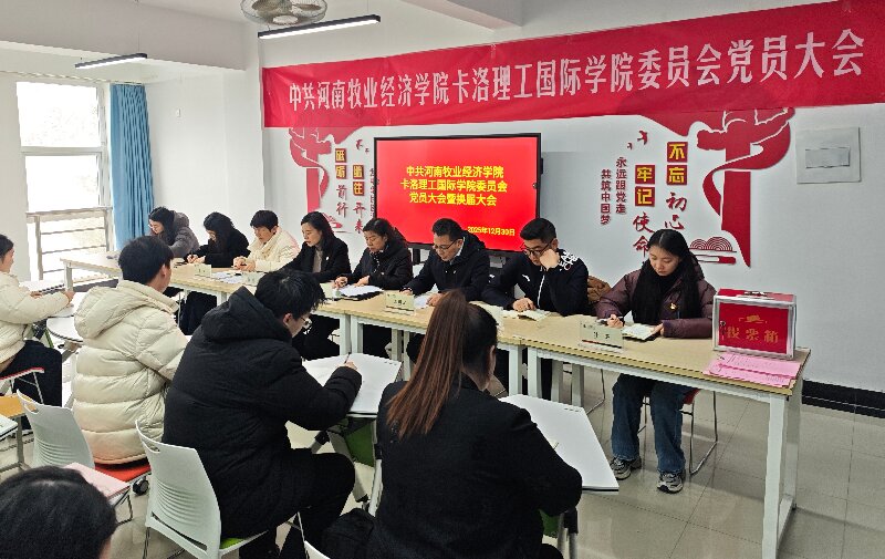 12月30日,中共河南牧业经济学院卡洛理工国际学院委员会党员大会在龙子湖校区7-8宿舍楼2204会议室隆重召开。大会听取并审议了上一届党委工作报告,选举产生了新一届学院党的委员会和纪律检查委员会。学院全体师生党员参加大会,会议由院党委书记杨桦主持。