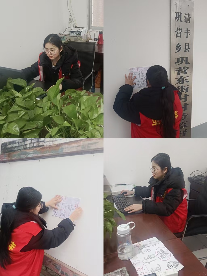24级农经01班孟婷同学在返乡期间,深入清丰县巩营乡东街村,开展为期七日的防诈骗科普宣传实践。为使防诈知识深入人心,她精心制作图文并茂的手抄报,张贴于村公告栏、文化广场等显著位置,清晰列出刷单返利、陌生链接、冒充亲友借钱等高发诈骗类型及防范要点。同时,她主动上门与老人亲切交谈,以通俗语言讲述真实案例,并指导老人辨别陌生来电、核实转账信息。孟婷表示,此次实践让她深切认识到基层反诈工作的重要性,每一次耐心讲解都可能为村民筑牢一道安全防线。